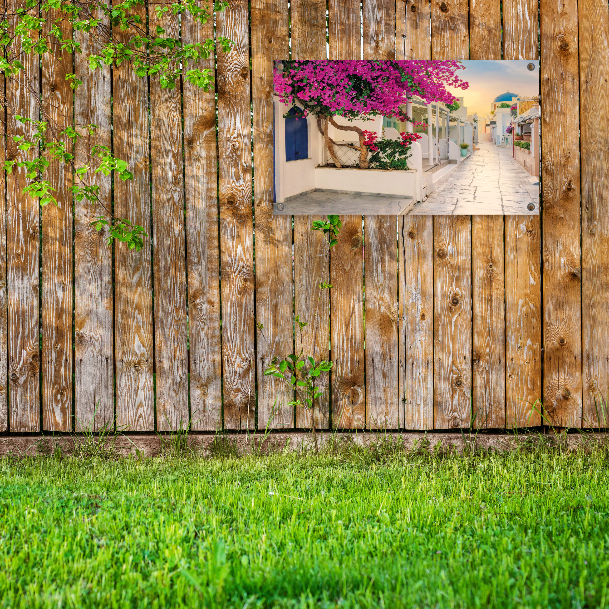 De tuinposter is verkrijgbaar in vier verschillende formaten. Daarnaast bevat de poster in alle vier de hoeken een ring. Hierdoor kun je deze eenvoudig