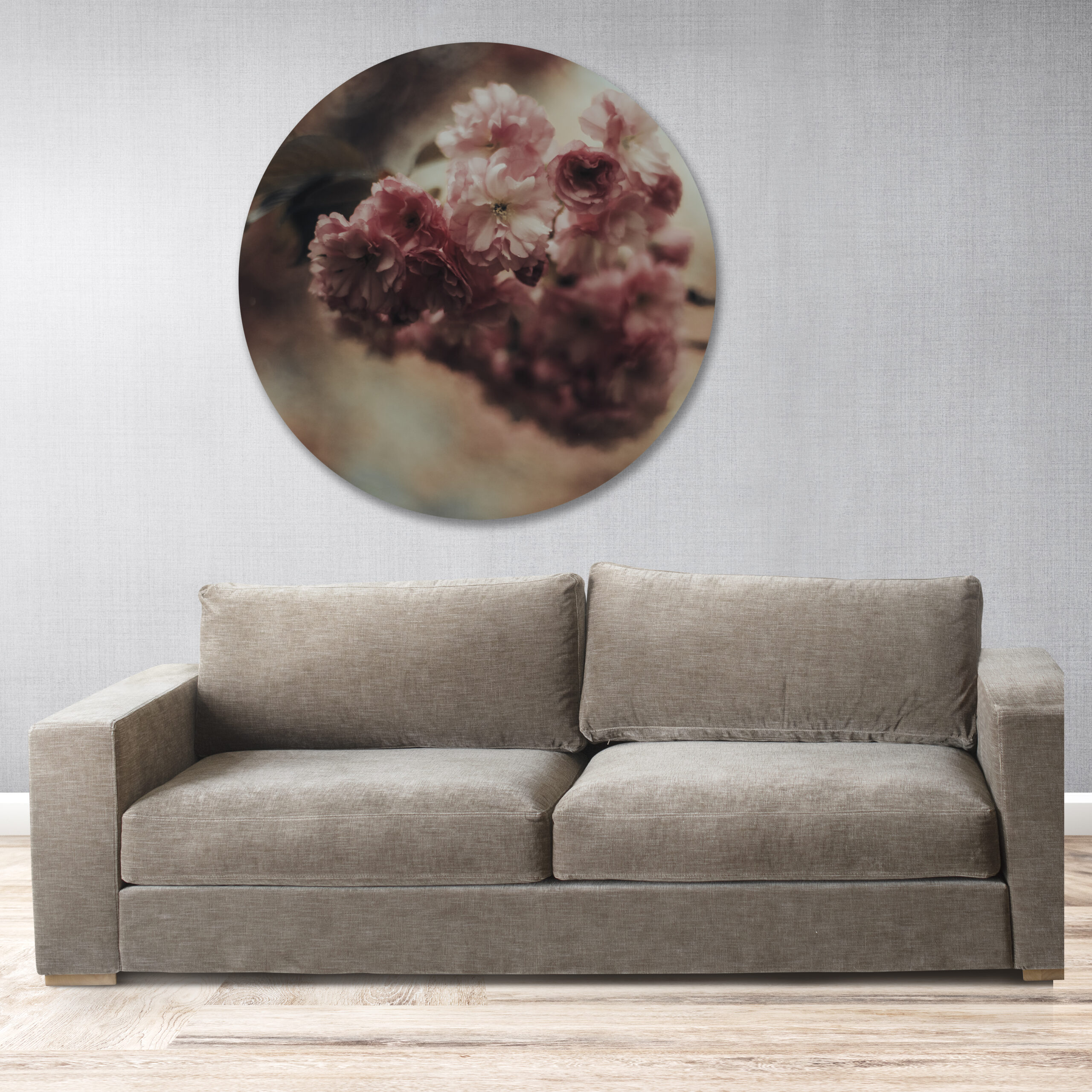 De ronde vorm maakt deze wanddecoratie speels en modern, terwijl de subtiele kleurnuances zorgen voor een verfijnde, artistieke uitstraling. Een prachtige keuze voor wie houdt van natuur, bloemen en een vleugje romantiek in huis.