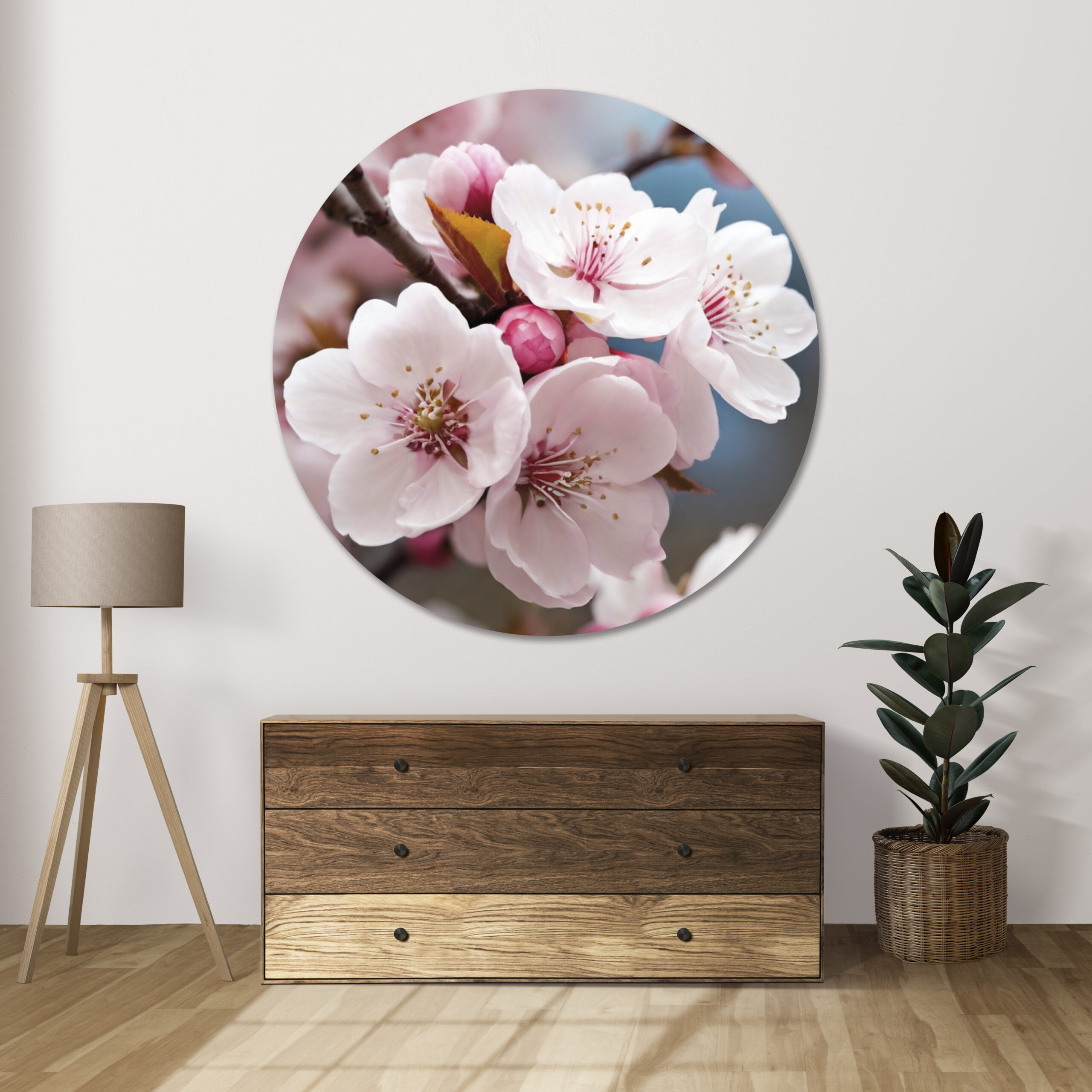 Deze wanddecoratie is ideaal voor de woonkamer, slaapkamer of werkplek. De ronde vorm geeft een moderne en speelse uitstraling, terwijl de haarscherpe details de natuur bijna tastbaar maken. Perfect voor iedereen die houdt van bloemen, romantische interieurs of een vleugje lente in huis.